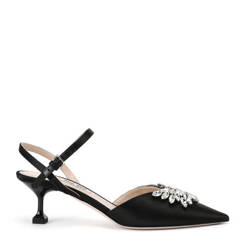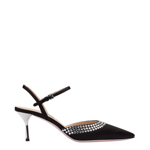 MiuMiu/缪缪 黑色 女士仿水晶装饰缎面高跟鞋 5I561C_QU6_F0002_F_DX55