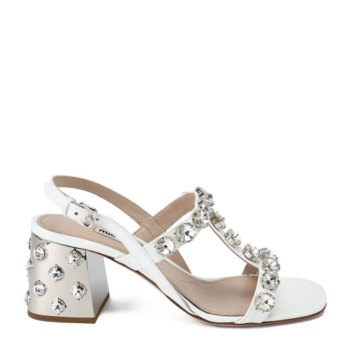 MiuMiu/缪缪 白色 女士仿水晶装饰跟漆皮高跟凉鞋 5X978C_LZF_F0009_F_065