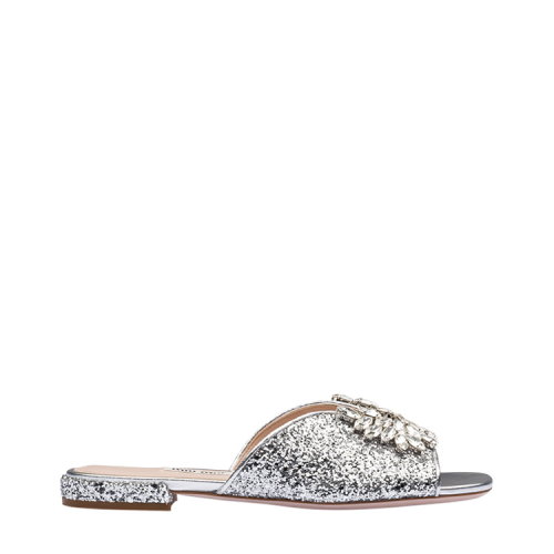MiuMiu/缪缪 银色 女士仿水晶装饰通体亮片平底穆勒鞋 5XX416_3C8V_F0118_F_D01
