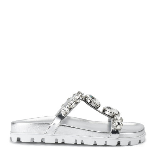 MiuMiu/缪缪 银色 女士仿水晶装饰金属皮革凉鞋 5XX414_3T06_F0118_F_010