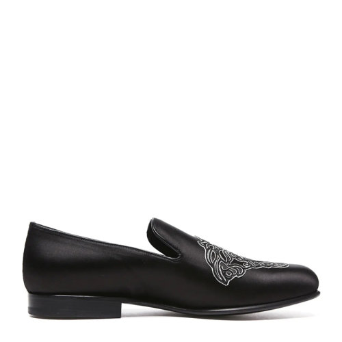 VERSACE JEANS/范思哲牛仔 男士黑色缎面经典美杜莎头像刺绣装饰休闲鞋平底鞋单鞋男鞋 DSU5152-DRA5C-D41E