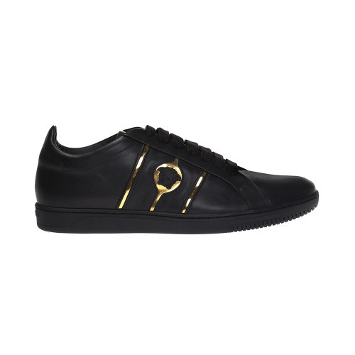 VERSACE/范思哲 男士黑色皮革经典美杜莎头像回形针装饰休闲鞋运动鞋低帮鞋平底鞋板鞋单鞋男鞋 FSX040C-FVLN-F437N