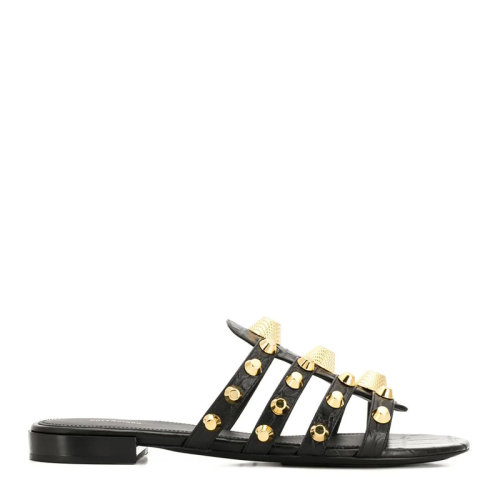 Balenciaga/巴黎世家 女士黑色皮革时尚铆钉装饰凉鞋拖鞋沙滩鞋女鞋 549897-A6DO-1000