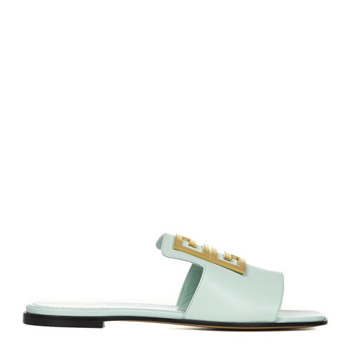 GIVENCHY 纪梵希 女士 鞋靴 蓝色金属LOGO装饰小牛皮平底拖鞋 女士凉拖 GIVENCHY 女士蓝色小牛皮平底拖鞋 BE303AE0XQ-466