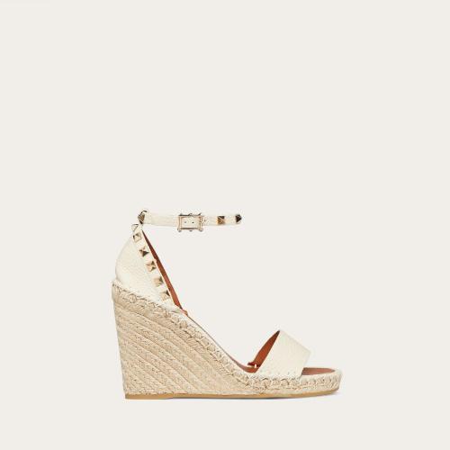 VALENTINO华伦天奴 22年春夏 女士 高跟凉鞋 SANDALES COMPENSéES ROCKSTUD DOUBLE EN VEAU G 预定商品1-3周发货
