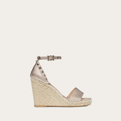 VALENTINO华伦天奴 22年春夏 女士 高跟凉鞋 Sandales compensees Rockstud Double en cuir de