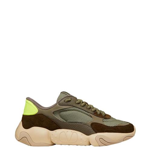 Valentino/华伦天奴 22年早春新款 Garavani Bubbleback系列 男士军绿色/棕色网眼拼麂皮运动鞋XY2S0F08KNZU86