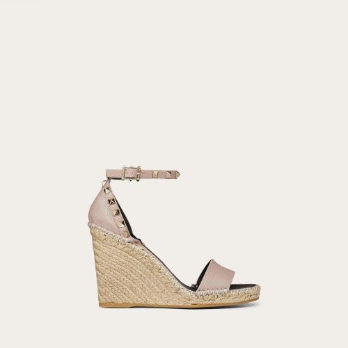 VALENTINO华伦天奴 22年春夏 女士 高跟凉鞋 SANDALES COMPENSéES ROCKSTUD DOUBLE EN VEAU G