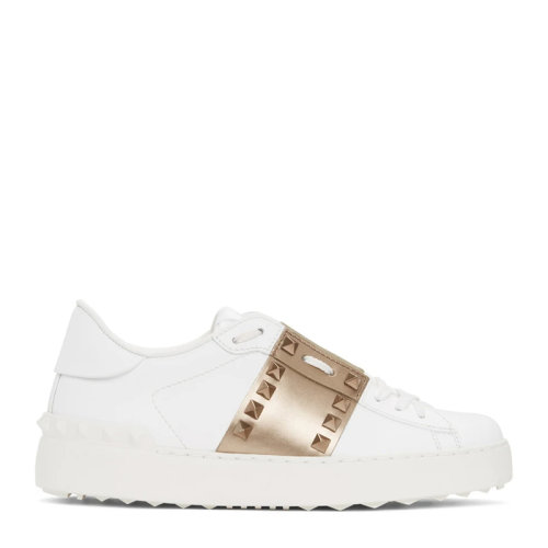 Valentino/华伦天奴 女士白色皮革经典铆钉装饰休闲鞋运动鞋小白鞋平底鞋单鞋女鞋 WW2S0A01-HEL-155