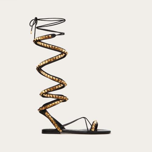 VALENTINO华伦天奴 22年秋冬 女士 平底凉鞋 SANDALES BASSES ROCKSTUD NO LIMIT EN NAPPA XW0