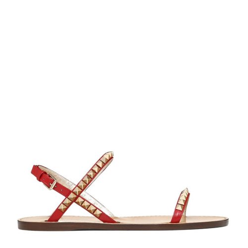 Valentino/华伦天奴 女士时尚红色小牛皮一字平跟鞋凉鞋女鞋