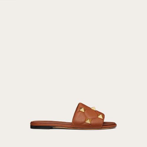 VALENTINO华伦天奴 22年秋冬 女士 平底凉鞋 CLAQUETTES ROMAN STUD EN VEAU GRAINé MATELASS