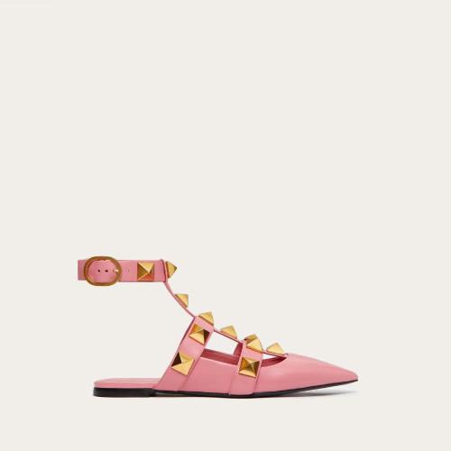VALENTINO华伦天奴 22年春夏 女士 平底凉鞋 Roman Stud 小牛皮芭蕾平底鞋 VW0S0BY5ZWMW10