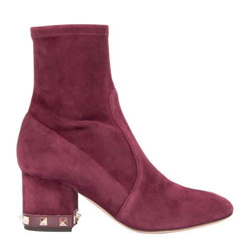 Valentino 华伦天奴 女士 鞋靴 桃红色粗跟尖头绒面革短靴 女士短靴