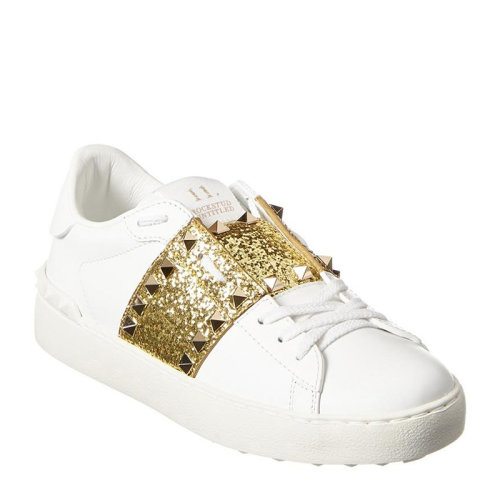 Valentino/华伦天奴 女士白色皮革金色亮片铆钉装饰休闲鞋运动鞋小白鞋板鞋单鞋女鞋 UW2S0A01-TJQ-837