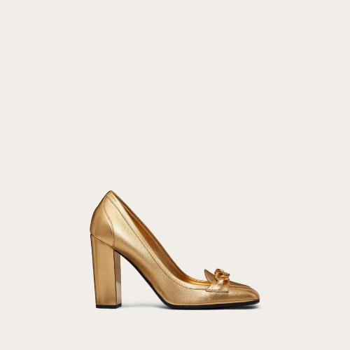VALENTINO华伦天奴 22年秋冬 女士 高跟鞋 ESCARPINS VLOGO CHAIN EN NAPPA MéTALLISé. TALO