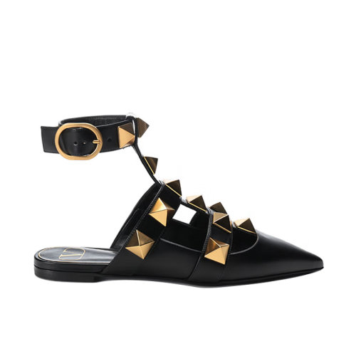 VALENTINO华伦天奴 22年秋冬 女士 平底凉鞋 Ballerines Rockstud vernies a brides effet cag 预定商品1-3周发货