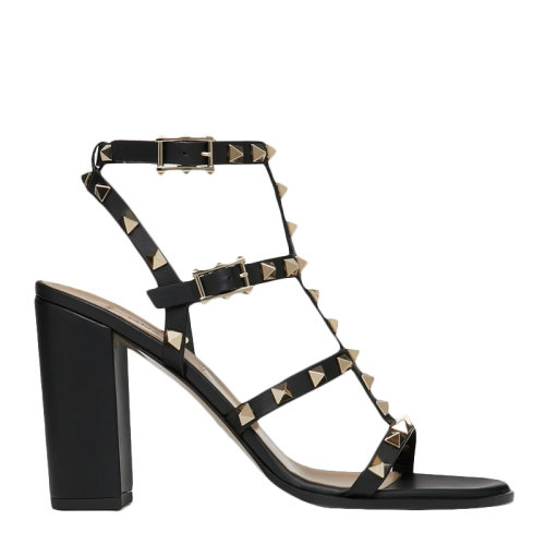 Valentino/华伦天奴 女士纯色小牛皮经典铆钉装饰露趾高跟鞋粗跟鞋凉鞋女鞋 WW2S0749-VBP 多色可选