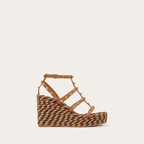 VALENTINO华伦天奴 22年秋冬 女士 高跟凉鞋 Sandales compensees a brides Rockstud en veau.