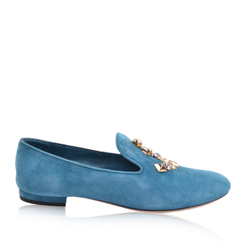 Louis Vuitton/路易威登 女士蓝绿色天鹅绒铆钉气质乐福鞋平跟单鞋