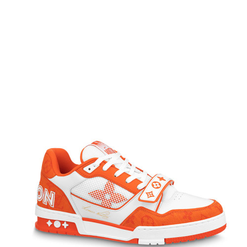 Louis Vuitton/路易威登 22年春夏新款 LV TRAINER系列 男士橙色丹宁布老花图案运动鞋1A9ZBI