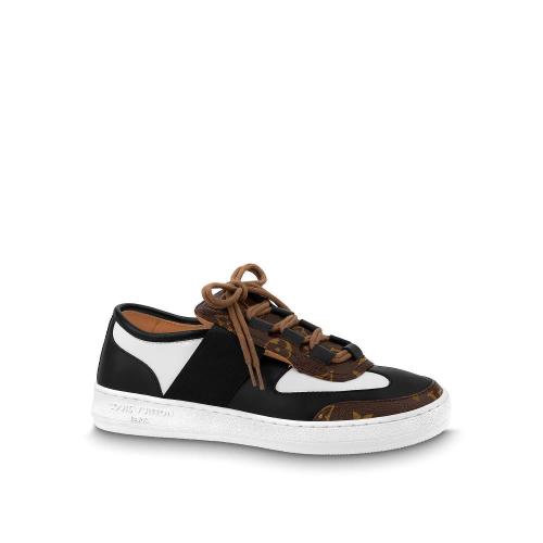 预定1个月 Louis Vuitton/路易威登女士黑色小牛皮和专利Monogram帆布运动鞋逃跑1A3CW5