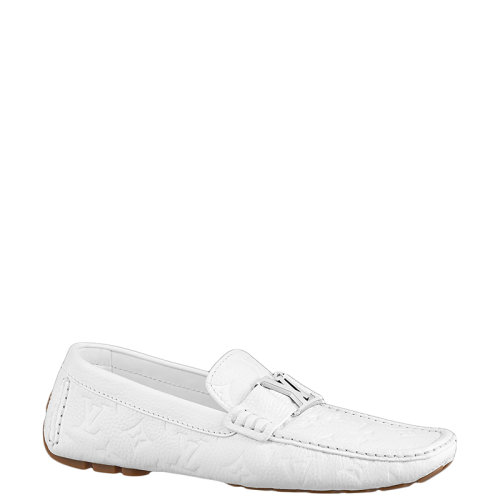 Louis Vuitton/路易威登 22年早春新款 MONTE CARLO系列 男士白色压纹粒面小牛皮老花压纹乐福鞋1A9F7Q