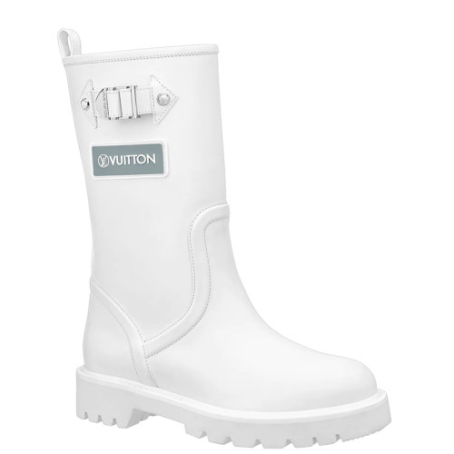 Louis Vuitton/路易威登 22年早春新款 PLATE TERRITORY系列 女士白色小牛皮浸漆效果中筒靴1A9H8Q