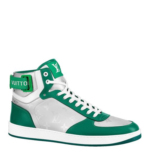 Louis Vuitton/路易威登 22年早春新款 RIVOLI系列 男士绿色牛皮革和金属质感老花帆布高帮运动鞋1A9J69