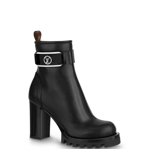Louis Vuitton/路易威登 22年春夏新款 STAR TRAIL系列 女士黑色牛皮革LV圆形搭扣高跟短靴1AA0O4
