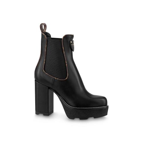 Louis Vuitton/路易威登 22年早春新款 LV BEAUBOURG系列 女士黑色小牛皮切尔西靴踝靴1A8949