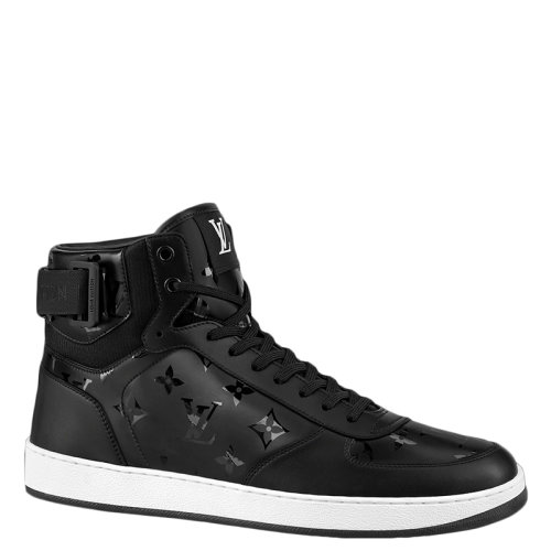 Louis Vuitton/路易威登 22年早春新款 RIVOLI系列 男士黑色牛皮革和金属质感老花帆布高帮运动鞋1A9J59