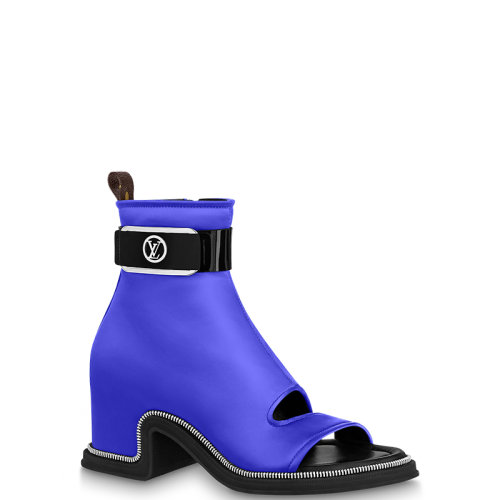 Louis Vuitton/路易威登 22年春夏新款 MOONLIGHT系列 女士宝蓝色丝缎粗跟露趾及踝靴1AA0JJ
