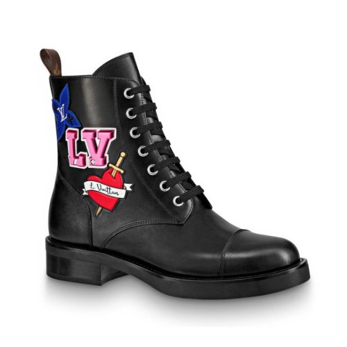 【亏本特价】Louis Vuitton/路易威登 新款黑色女士短靴LV BLACK HEART 军靴1A4MM6