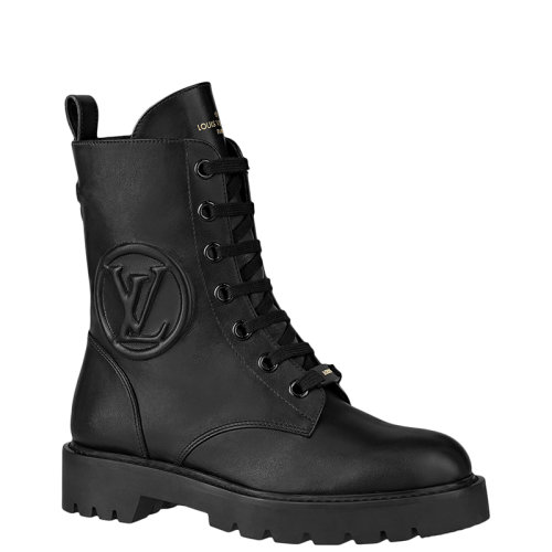 Louis Vuitton/路易威登 22年早春新款 TERRITORY系列 女士黑色小牛皮浸漆效果LV Circle压花马丁靴中筒靴1A94QK