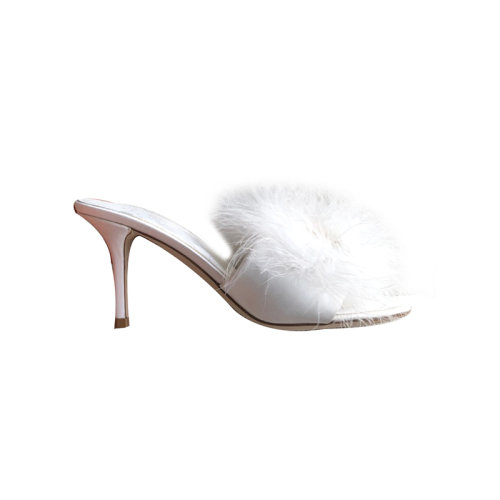 Louis Vuitton 路易威登 女士白色钻款羽毛矮跟拖鞋 经典水钻Lv标