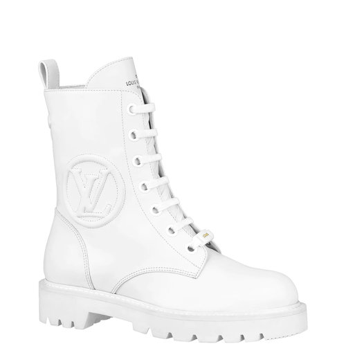 Louis Vuitton/路易威登 22年早春新款 TERRITORY系列 女士白色小牛皮浸漆效果马丁靴中筒靴1A94Q5