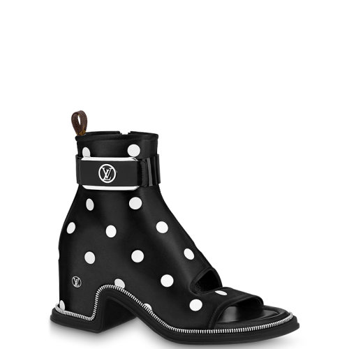Louis Vuitton/路易威登 22年春夏新款 MOONLIGHT系列 女士黑色/白色丝缎粗跟波点及踝靴1AA0KD