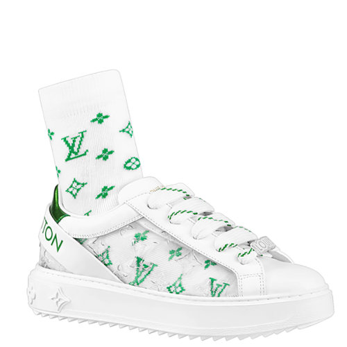 Louis Vuitton/路易威登 22年早春新款 TIME OUT系列 女士白色牛皮革绿色老花袜子混合材质运动鞋1A9Q08