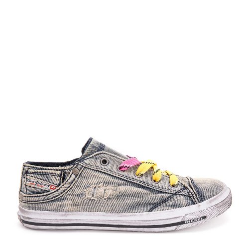 【米兰仓速发】 DIESEL/迪赛 牛仔布 作旧效果 撞色鞋带 圆头 白色橡胶底 脏脏鞋男童