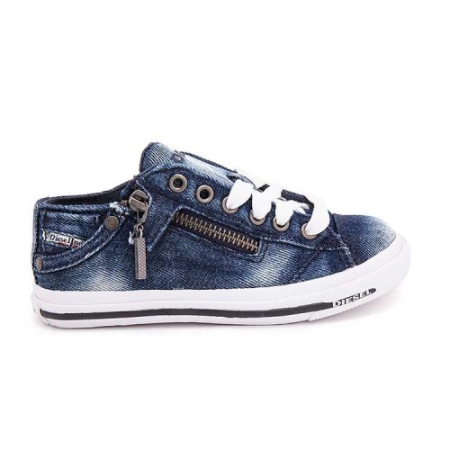 【米兰仓速发】 DIESEL/迪赛 牛仔布 白色鞋带 系带 拉链装饰 水洗效果 圆头 白色橡胶底 儿童 休闲鞋男童【断码35码】