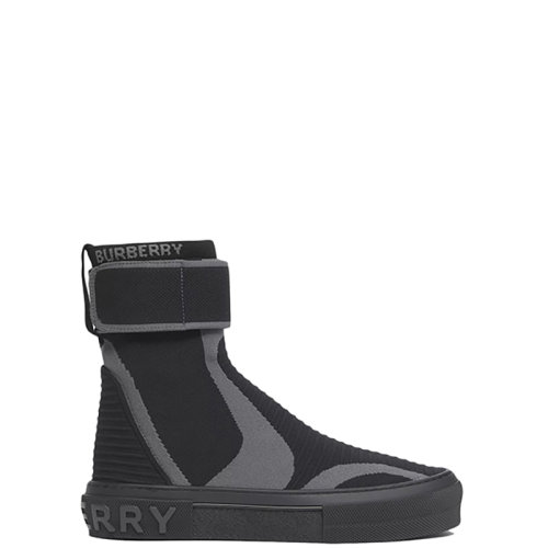 BURBERRY/博柏利 22年春夏新款 女士黑色针织弹性尼龙面料条纹装饰高帮运动鞋80534851