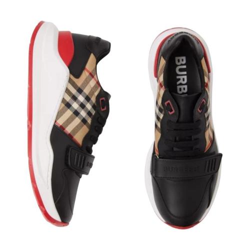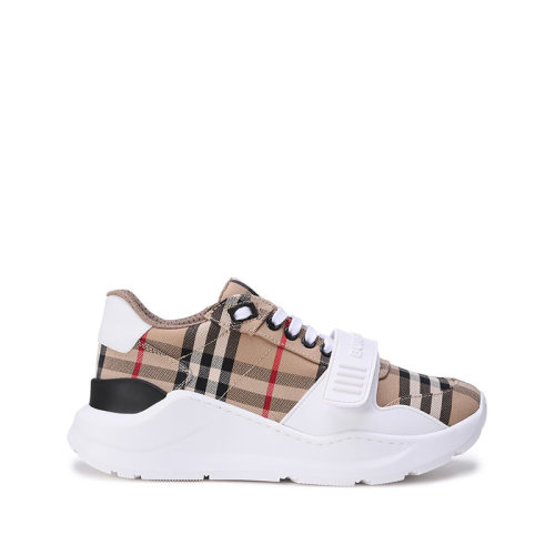 BURBERRY 22年秋冬 女士 皮革拼 Vintage 格纹棉质运动鞋 80381841 预定商品1-3周发货