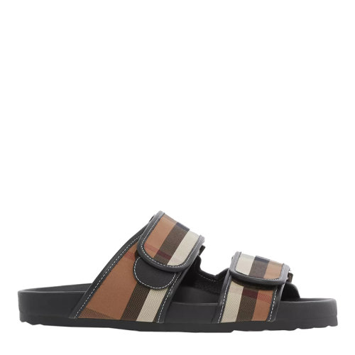 BURBERRY/博柏利 22年春夏新款 男士桦木棕色格纹棉质搭皮革饰边可调束带凉鞋80558231