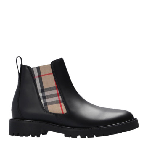 BURBERRY 22年秋冬 男士 Vintage 格纹装饰皮革切尔西靴 80452441