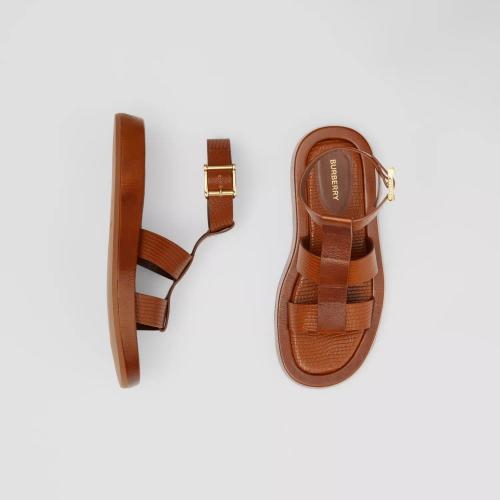 BURBERRY 22年秋冬 女士 压花皮革厚底高跟凉鞋 80563281