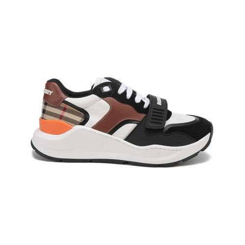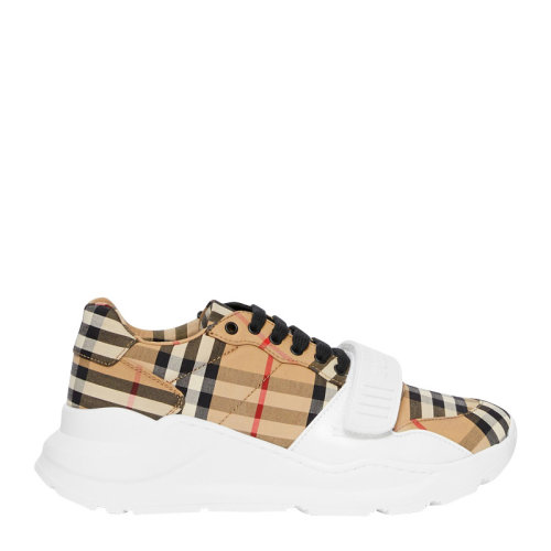 BURBERRY 22年秋冬 男士 Vintage 格纹棉质拼皮革运动鞋 80497761