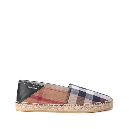 BURBERRY/博柏利【22春夏新款】男款织物配皮可踩脚平底渔夫鞋麻编鞋休闲鞋格纹 80481981