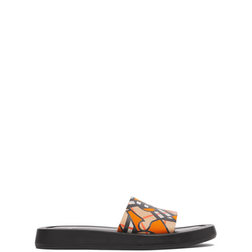 BURBERRY/博柏利 22年春夏新款 女士亮橘色棉麻混纺帆布面料老花印花拖鞋80561881