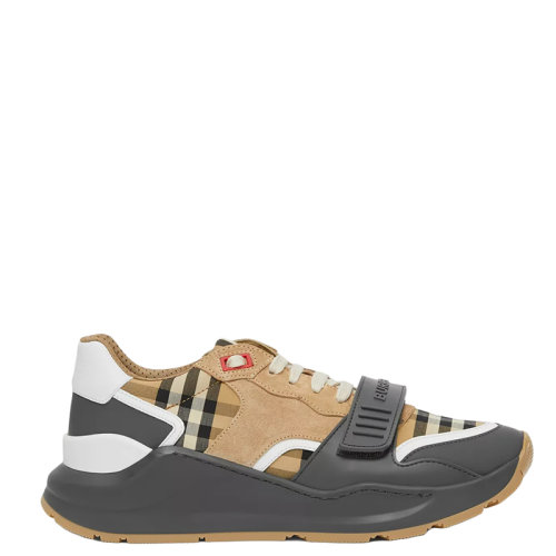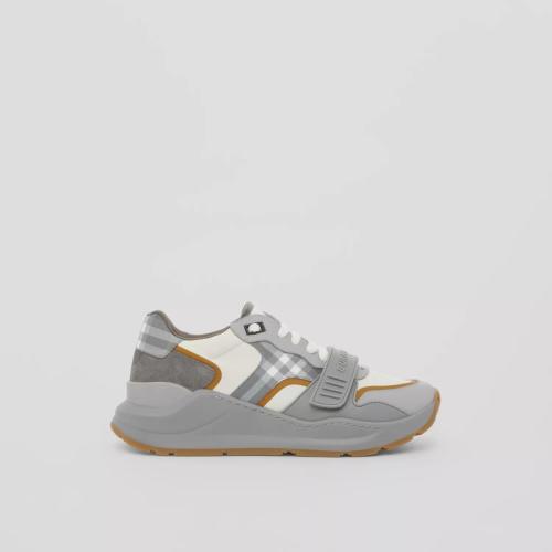 BURBERRY/博柏利 22年早春新款 女士灰色/典藏米色棉质拼麂皮小牛皮Vintage格纹运动鞋80323711